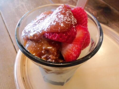 18時閉店とさせて頂きます。ご迷惑お掛けしますがよろしくお願い致します。写真は、春メニューの試作 道明寺といちごの塩キャラメルパフェです。現在 日々春メニュー試作中です (^-^)